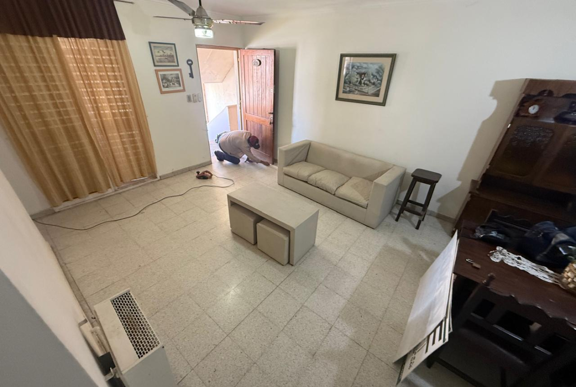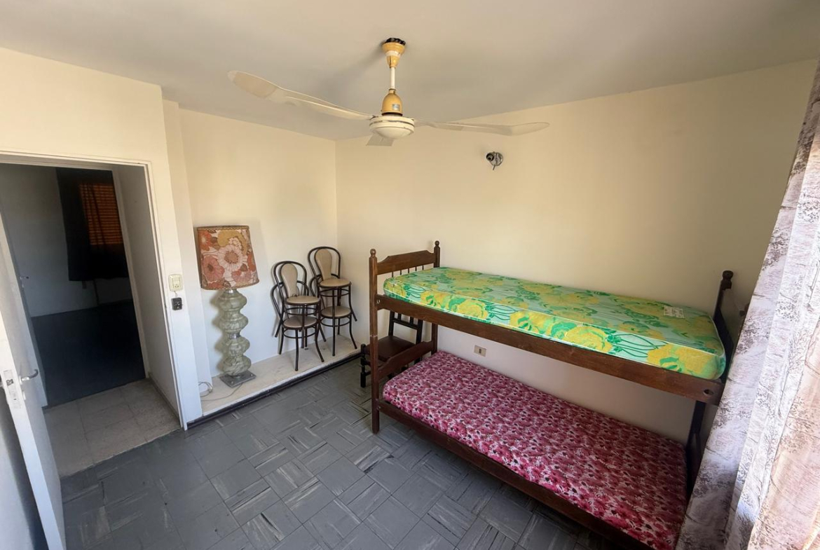 Departamento de 3 dormitorios, living comedor amplio con algunos muebles, salida al balcón, el departamento cuenta con 6 ventiladores de techo, presentó hace poco problemas de humedad en el techo del lavadero, edificio de estructura vieja